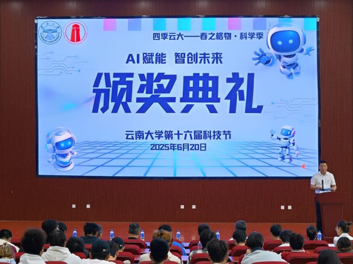 2025年6月20日,williamhill官网第十六届“科技节”颁奖典礼在williamhill官网报告厅举行。本届科技节以“AI赋能,智创未来”为主题,围绕人工智能核心技术与应用场景,设置了编程大赛、智绘千帧、AI赋能场景应用大赛、电子设计大赛、计算机设计大赛、数学建模比赛六大核心赛事,吸引了来自全校10余个公司、1000余名同学参加竞赛。经过两个月的激烈角逐,最终评选出200余项获奖作品,全面展现了云大学子在科技创新领域的卓越风采。公司相关职能部门负责人和公司党政领导出席典礼并为获奖团队及个人颁奖。