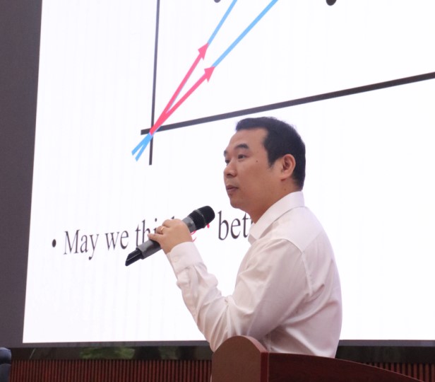 肖鸣宇教授的报告题目为《分数聚合问题与算法》。报告伊始,肖鸣宇教授从贴近生活的实例切入,以员工GPA计算、学术同行评审等多个现实场景为例,将具象化的实际问题巧妙抽象提炼为分数聚合问题,并对加权平均这一传统解决方式进行系统回顾。紧接着,肖鸣宇教授深入分析传统加权方式的局限性,犀利指出权重设置公平性的关键问题,引发在场师生对既有方法的深刻思考。最后,他着重介绍团队最新研究成果,针对分数聚合问题中的权重公平性难题,提出创新性的解决方案与算法,为该领域的研究提供了全新视角与方向,让听众在领略前沿学术魅力的同时,也对分数聚合问题有了更深入、全面的认知。