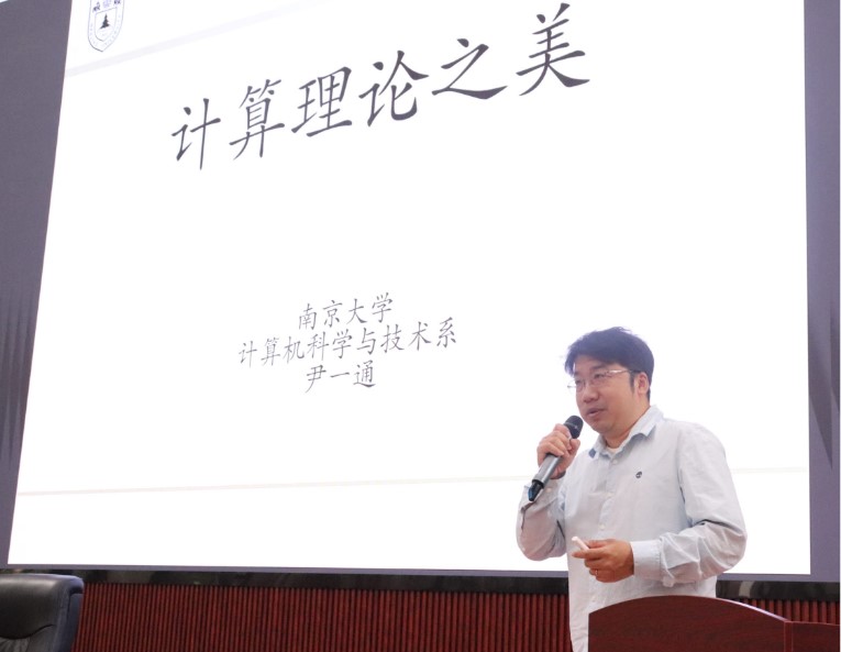 尹一通教授的报告题目为《计算理论之美》。他以计算机科学先驱阿兰·图灵(Alan Turing)的经典问题“什么是计算?”为切入点,深入浅出地解析图灵机的数学模型,点明其对现代计算机科学发展的奠基意义。紧接着,他通过鲜活案例,生动阐释 “存在不可被计算的问题”,清晰展现数学与计算领域的边界与局限。报告中,尹教授聚焦计算复杂性理论的核心——P与NP的关系,巧妙引入《超级马里奥》、《塞尔达传说》等大众熟知的经典游戏,将复杂的NP完全问题研究融入趣味化的情境,诙谐的讲解引发全场阵阵欢笑。最后,尹一通教授总结道:“计算机科学不仅是研究机器的学科,更是探索问题本质与解决之道的科学。”他以饱含期许的话语,鼓励青年学者勇攀理论计算机科学高峰,为学科发展注入新活力。