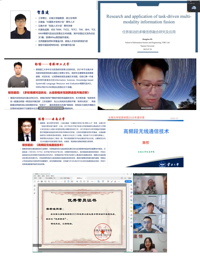 随后,多位专家学者围绕电磁智能认知、绿色协处理器、大语言模型、多模态融合等前沿话题开展专题讲座,分享了各自研究领域的前沿动态与创新成果,并与营员们积极互动交流,呈现了一场富有启发性的学术盛宴。结营典礼上,williamhill官网教师代表向本次活动的优秀营员颁发了优秀营员证书。